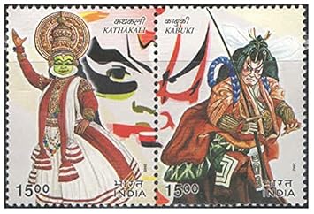 India 2002 Diplomatic Relations Between India and Japan (Kathakali Dancer & Kabuki Actor) – 2 Se-Tenant Postage Stamps Mint Unhinged