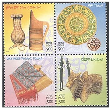 India 2002 Handicrafts of India (Cane & Bamboo – Thewa – Patola – Dhokra) – 4 Se-Tenant Postage Stamps Mint Unhinged