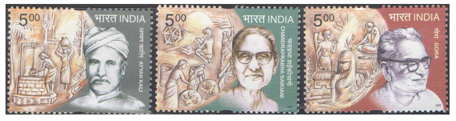 India 2002 Social Reformers – Ayyan Kali & Chandragupta Saikiani & Gora – Set of 3 Postage Stamps Mint Unhinged