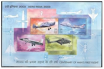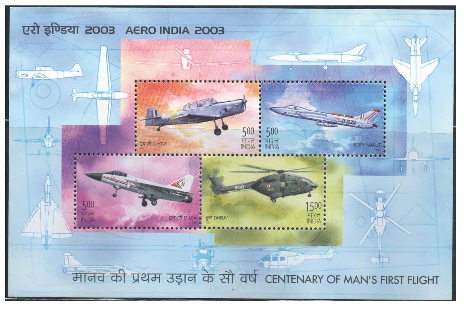 India 2003 – Aero India 2003 – Centenary of Man’s First Flight – Miniature Sheet of 4 Postage stamps