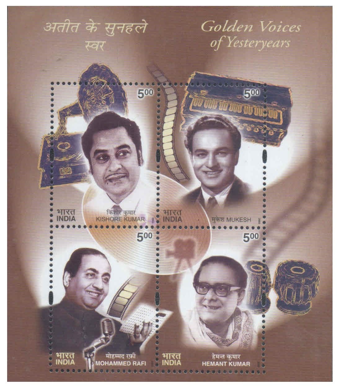 India 2003 Golden Voices of Yesteryears – Miniature Sheet of 4 Postage Stamps