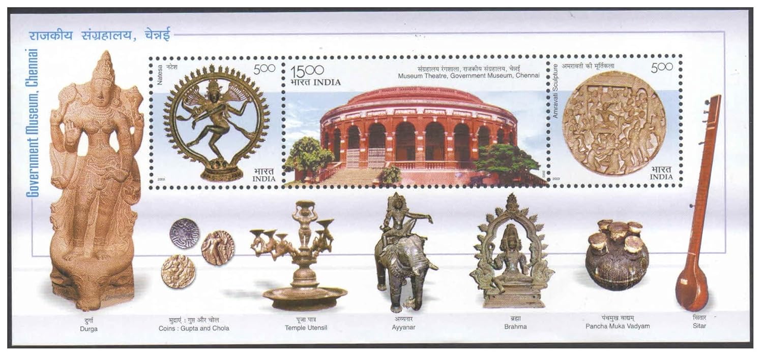 India 2003 Government Museum Chennai – Miniature Sheet of 3 Postage Stamps