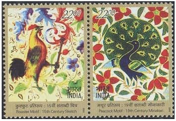 India 2003 India -France Relationship – Joint Issue – Rooster Motif & Peacock Motif – Se-Tenant of 2 Postage Stamps – Mint Unhinged