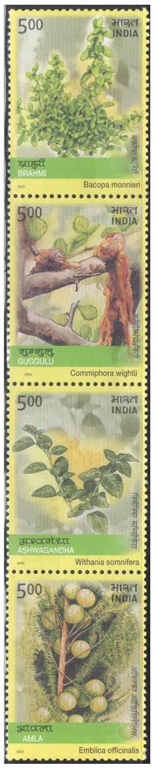 India 2003 Medicinal Plants of India – Vertical Se-Tenant Strip of 4 Postage Stamps Mint Unhinged