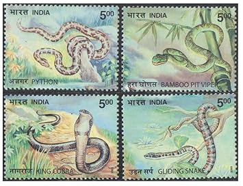 India 2003 Nature India – Snakes – Python-Pit Viper – King Kobra – Gliding Snake – Set of 4 Postage Stamps Mint Unhinged