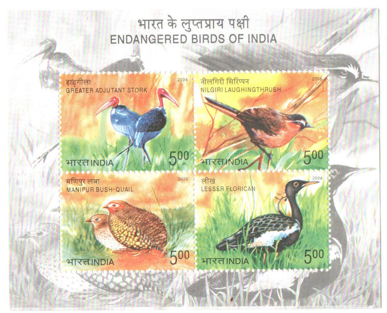 India 2006 Endangered Birds of India MS Miniature Sheet of 4 Postage Stamps Mint Unhinged