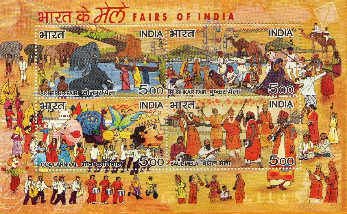 India 2007 FAIRS of India Stamp MS Miniature Sheet of 4 Stamps SONEPUR PUSHKAR GOA BAUL Mint UNHINGED