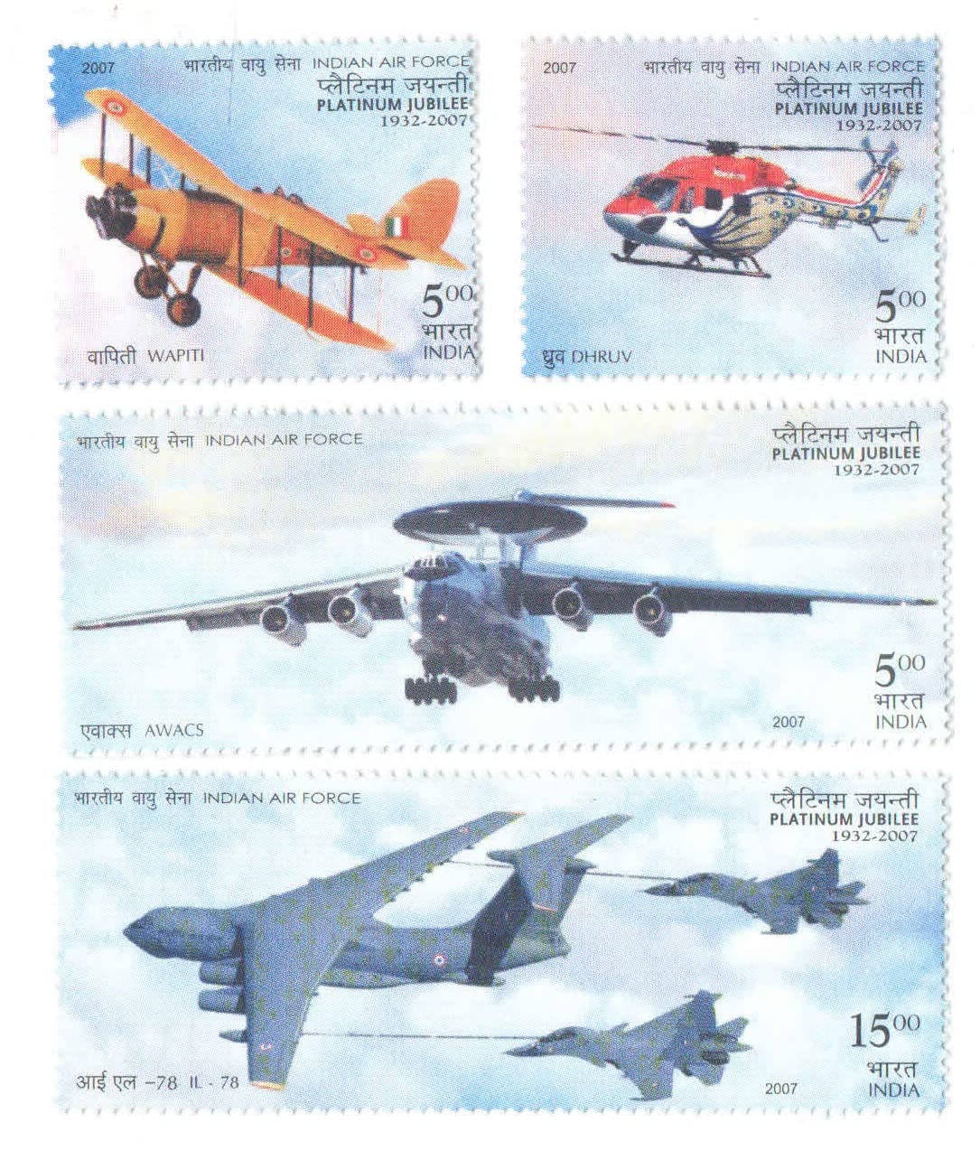India 2007 Indian Air Force Platinum Jubilee – Set of 4 Postage Stamps Mint Unhinged