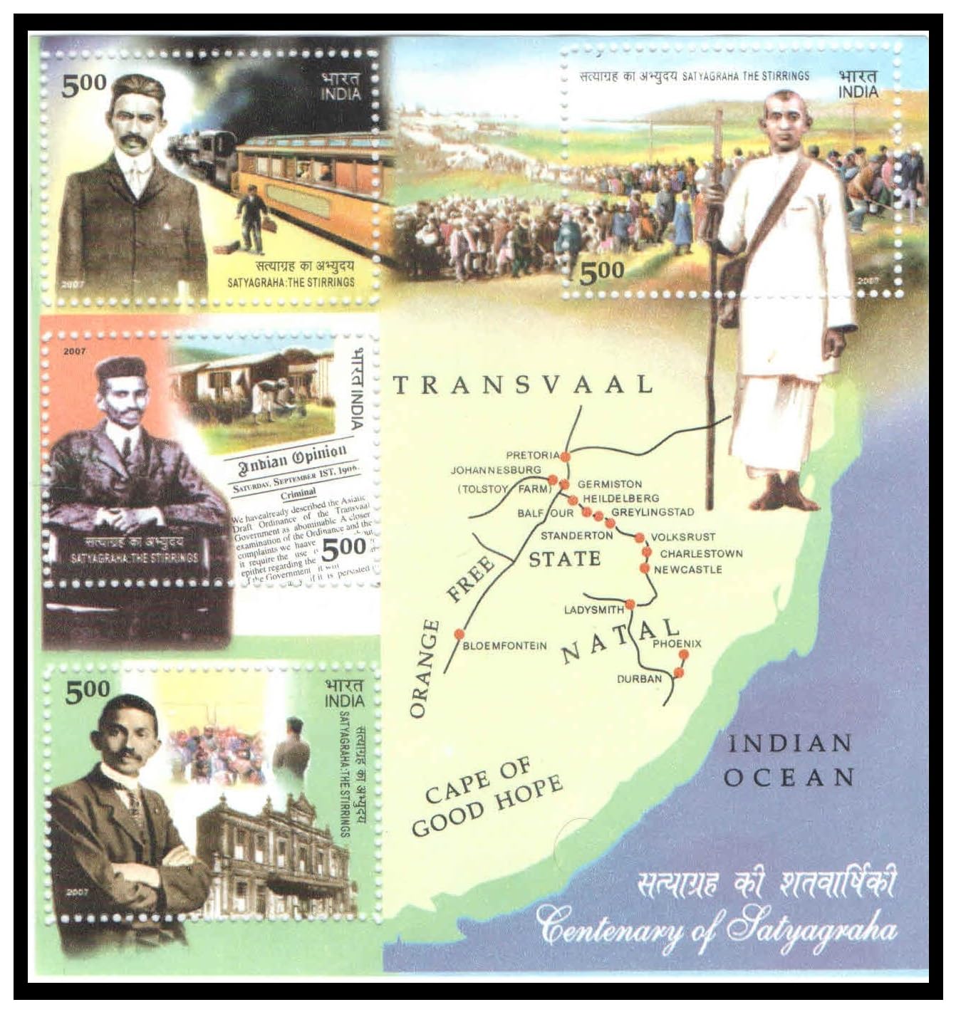 India 2007 Mahatma Gandhi – Satyagraha The stirrings – Miniature Sheet MS of 4 Postage Stamps Mint Unhinged