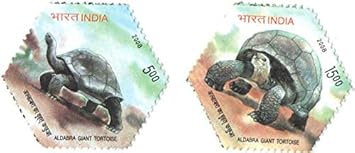 India 2008 Aldabra Giant Tortoise Set of 2 Hexagobal Stamps Mint Unhinged