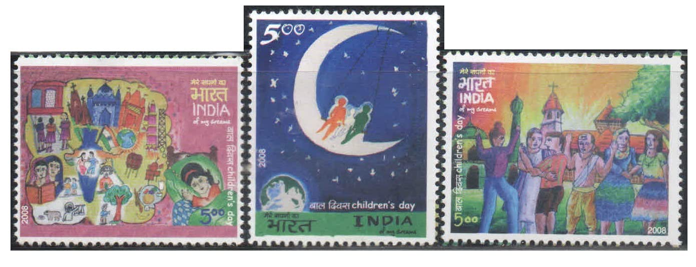 India 2008 Children’s Day – Set of 3 Postage Stamps Mint Unhinged
