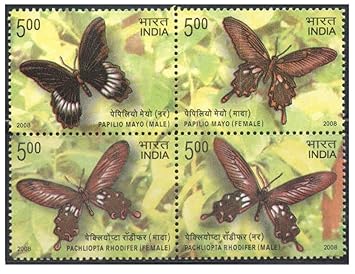 India 2008 Endemic Butterflies of Andaman & Nicobar Islands – Se-Tenant Block of 4 Postage Stamps Mint Never Hinged
