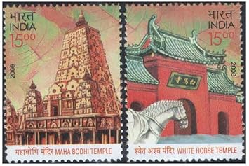India 2008 India – China Joint Issue – Maha Bodhi Temple & White Horse Temple – Set of 2 Postage Stamps Mint Never Hinged