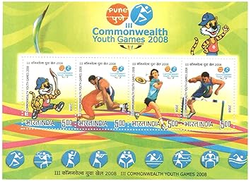 India 2008 Third Commonwealth Youth Games Pune (Mascot-Wrestling-Badminton-Hurdle Race) – Miniature Sheet (MS) of 4 Postage Stamps Mint Unhinged