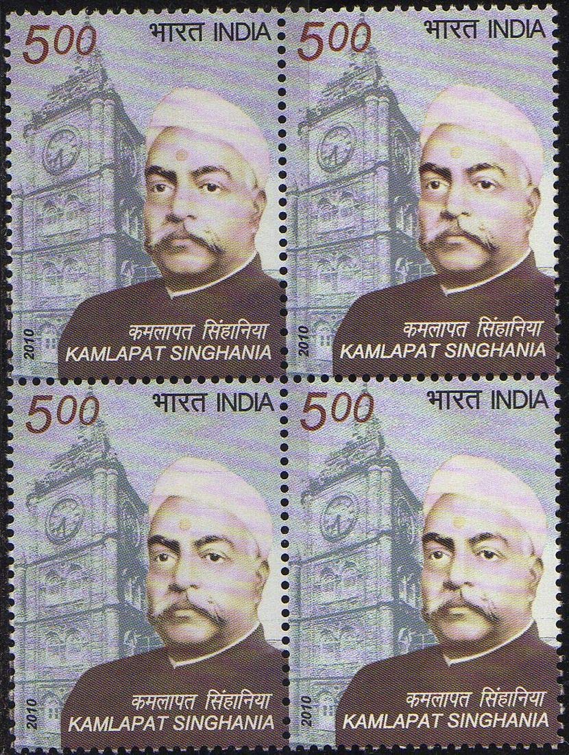 India 2010 Postage Stamp – KAMLAPAT SINGHANIA – Block of 4 Stamps Mint Non HINGED