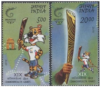 India 2010 – XIX Commonwealth Games Delhi – Mascot & Queen’s Baton Relay – Set of 2 Postage Stamps – Mint Unhinged