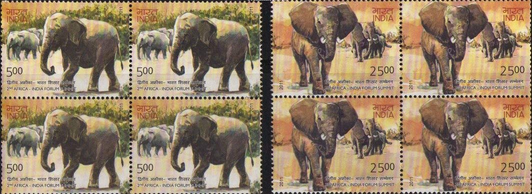 India 2011 2ND Africa India Forum Summit Elephant Set of 2 Blocks of 4 Stamps Each ( 8 Stamps ) Mint Unhinged
