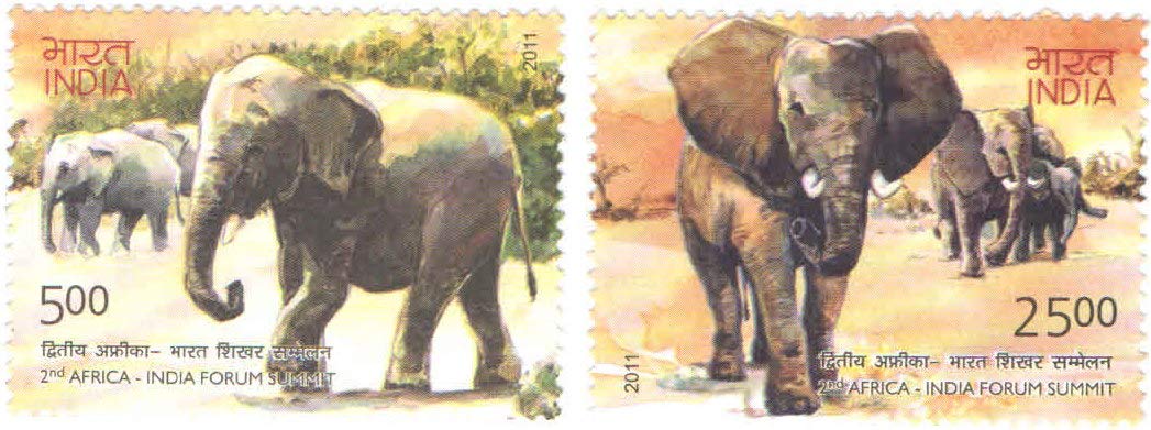 India 2011 2ND Africa India Forum Summit Postage Stamp African Elephant & Indian Elephant (Set of 2 Stamps) MNH