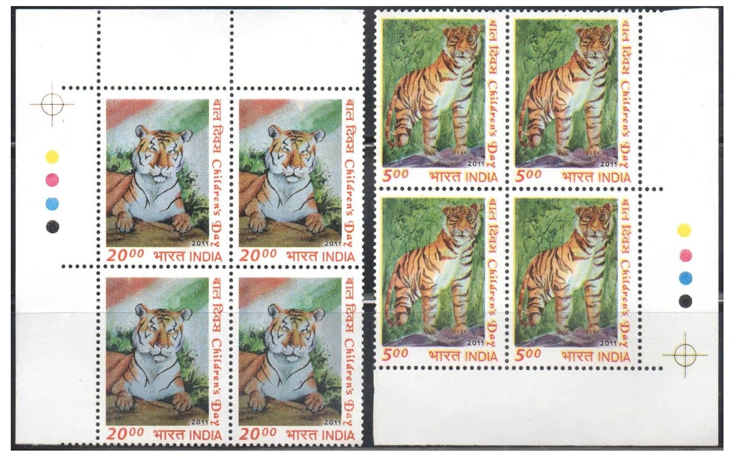 India 2011 Children’s Day – (Set of 2 Blocks of 4 Postage Stamps Each) with TL – Traffic Lights – Mint Unhinged
