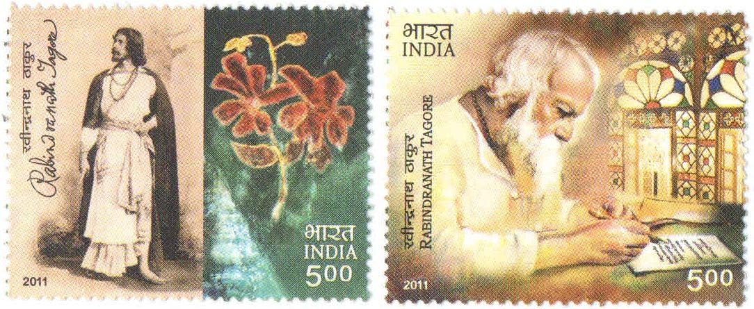 India 2011 Rabindranath Tagore Set of 2 Stamps ( As Poet – Writer & as Dramatist – Painter ) Mint Unhinged