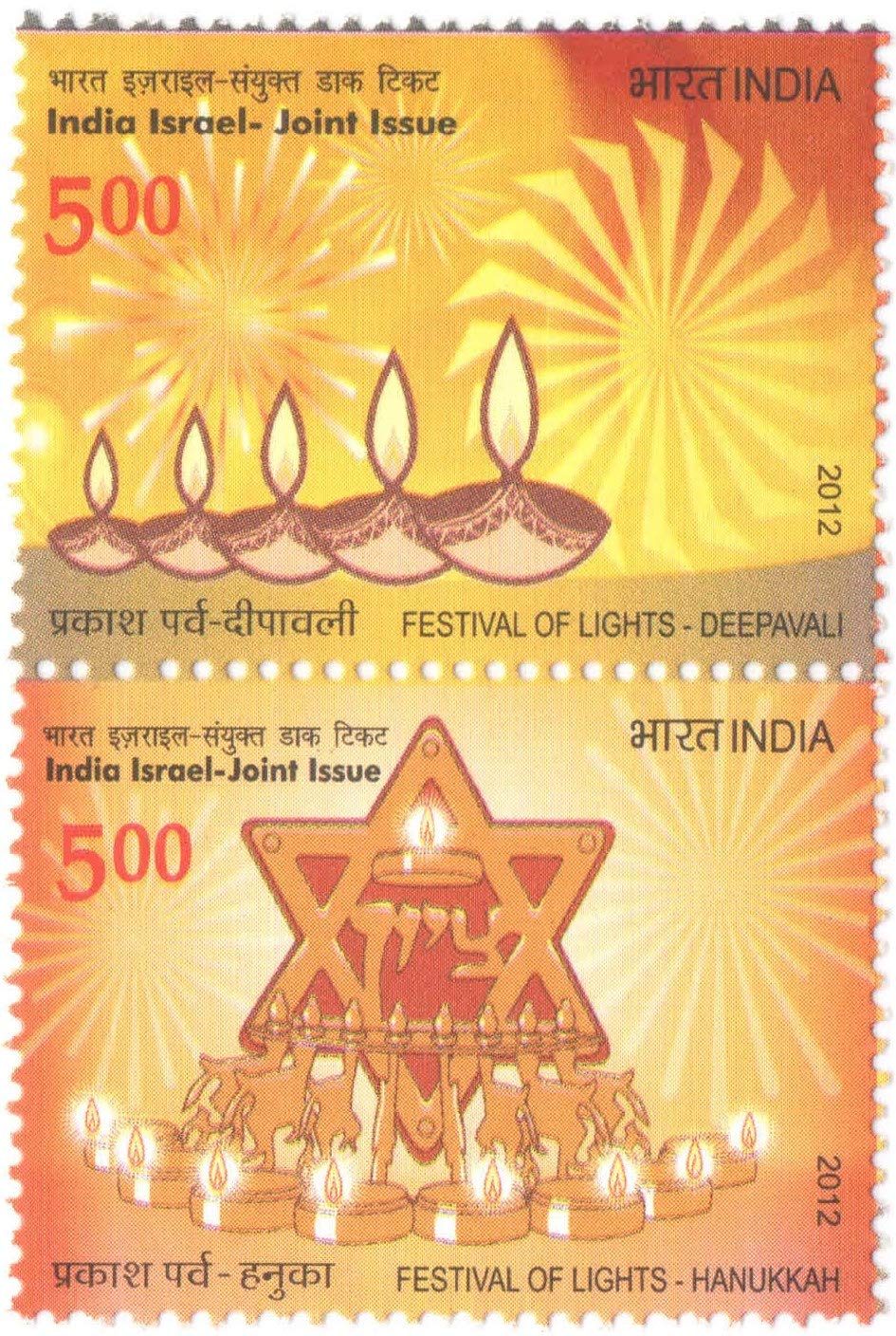 India 2012 India Israel Joint Issue – Festival of Lights – Deepavali and Hanukkah – Vertical Se-Tenant of 2 Postage Stamps MNH