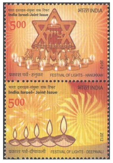 India 2012 India Israel Joint Issue Festival of Lights – Hanukkah and Deepavali – Vertical Se-Tenant of 2 Postage Stamps MNH