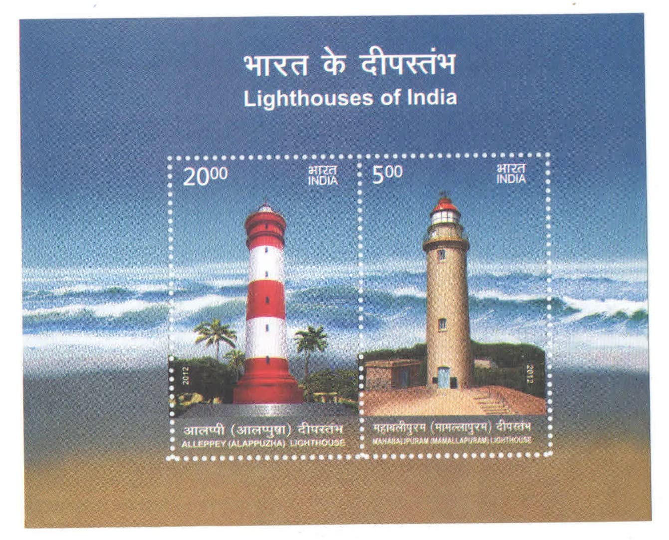 India 2012 Lighthouses (Light Houses) of India – ALLEPPEY & MAHABALIPURAM – MS Miniature Sheet Mint UNHINGED
