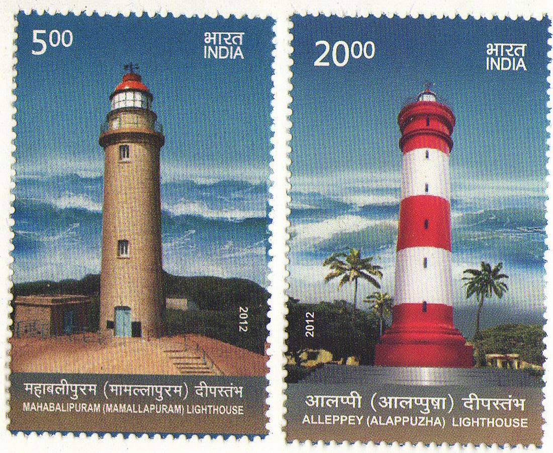 India 2012 Lighthouses MAHABALIPURAM and ALLEPPEY Set of 2 Stamps Mint Non HINGED
