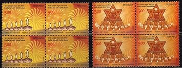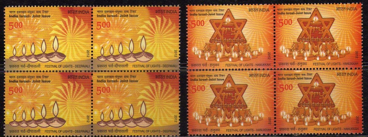 India 2012 Postage Stamp – India Israel Joint Issue Festival of Lights – Set of 2 Blocks of 4 Stamps Each MNH (8 Stamps)