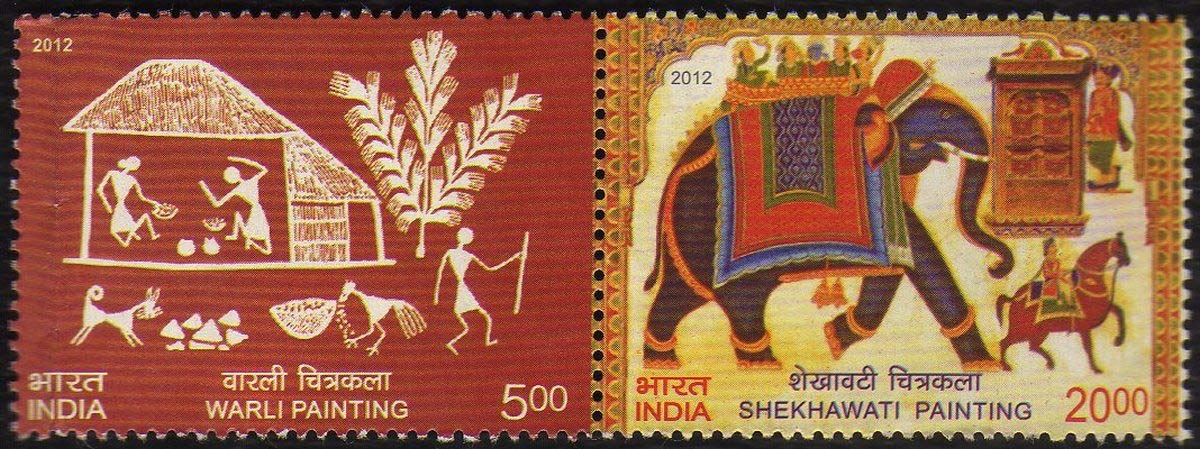 India 2012 SHEKHAWATI and WARLI Painting SE-Tenant of 2 Postage Stamps Mint UNHINGED