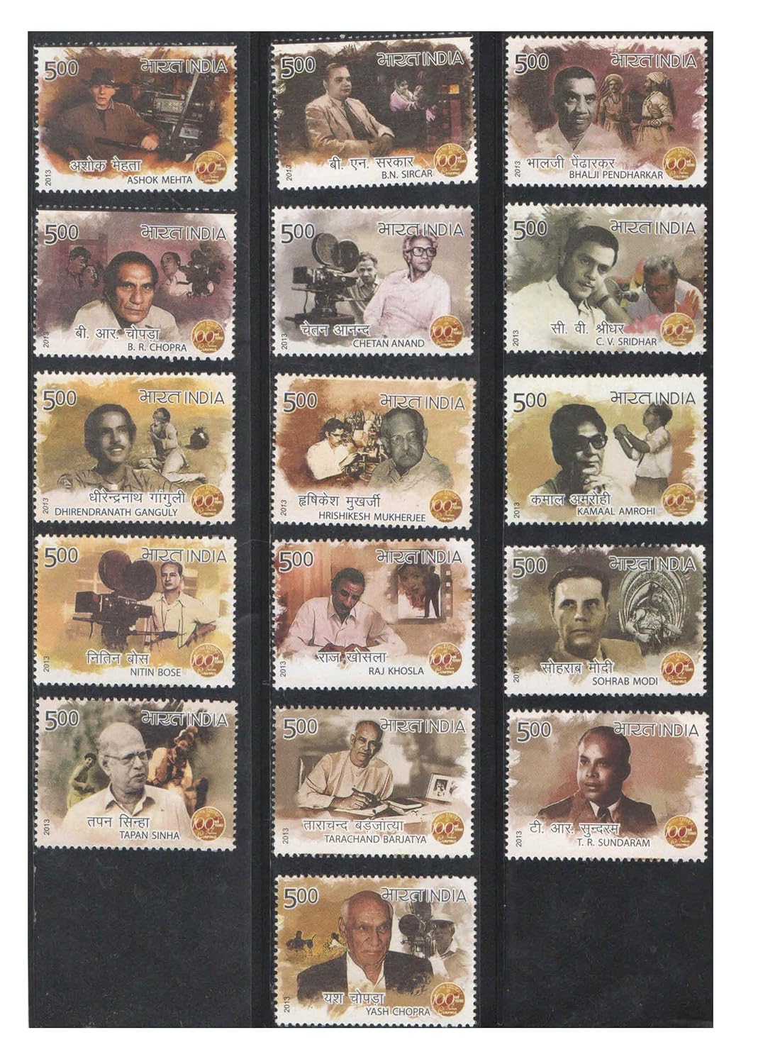 India 2013 Indian Cinema (100 Years of Indian Cinema) – Famous Producers & Directors – Set of 16 Postage Stamps Mint Unhinged