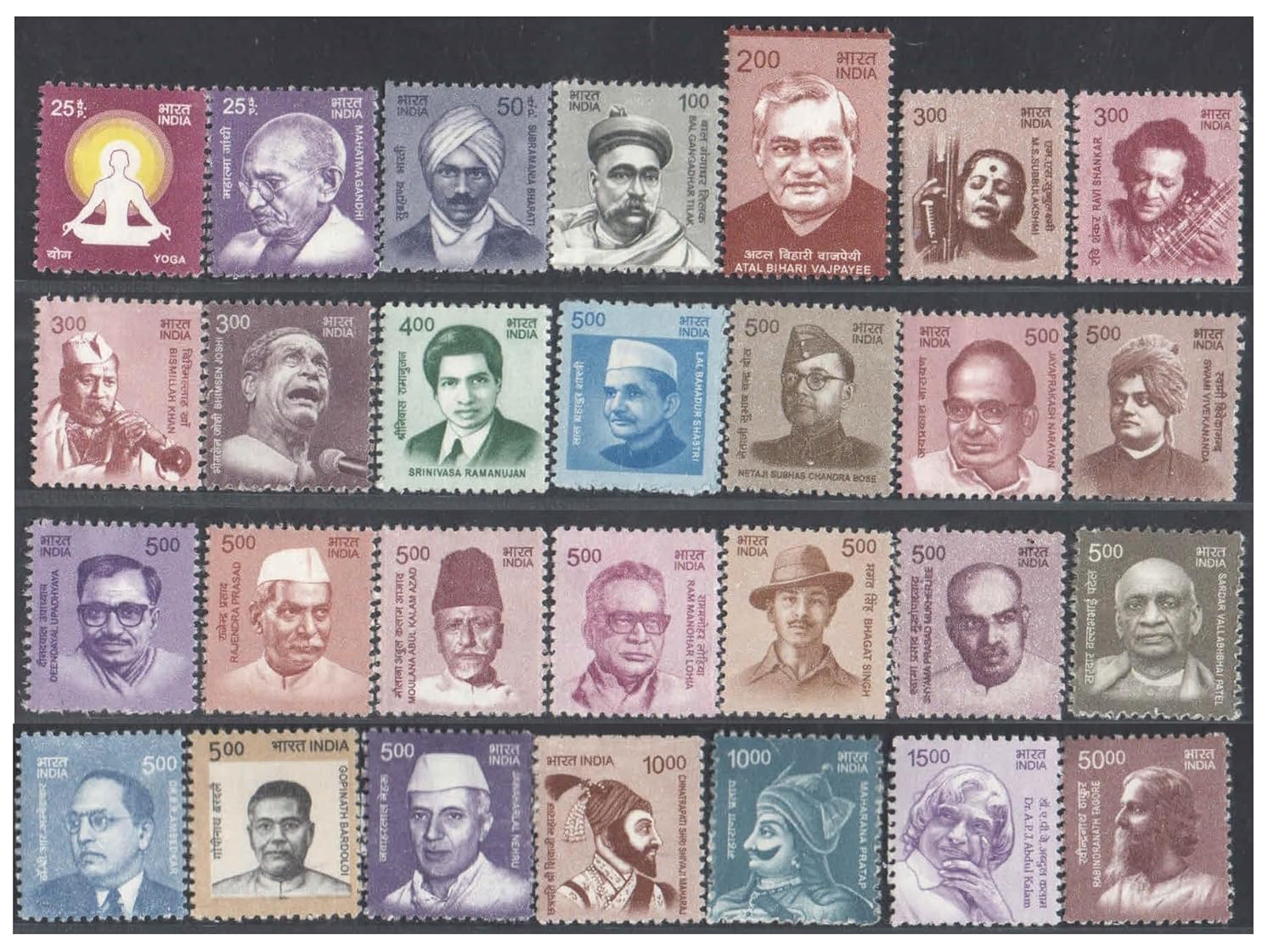 India 2015-2021 11th Definitive Series – Builders of Modern India (2nd Issue) Set of 28 Postage Stamps – Mint, Never Hinged for Collection