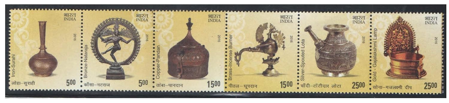 India 2016 Indian Metal Crafts – Se-tenant Strip of 6 Postage Stamps Mint Never Hinged