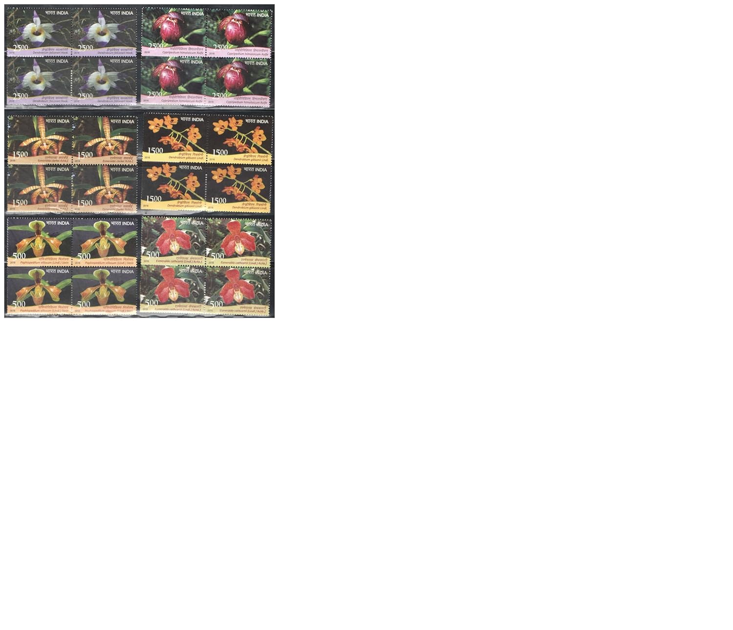 India 2016 Orchids – Set of 6 Blocks of 4 Postage Stamps Each – Mint Never Hinged