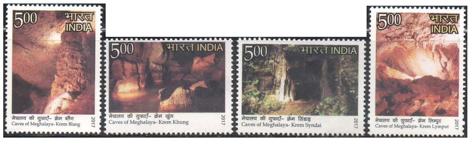 India 2017 Caves of Meghalaya – Set of 4 Stamps – Mint Unhinged Multicolor