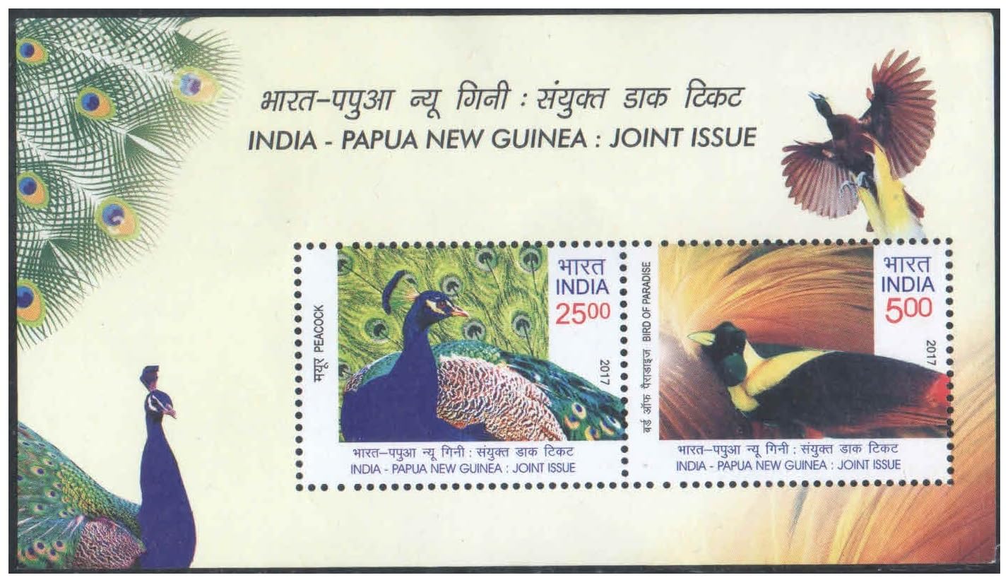 India 2017 India – Papua New Guinea Joint Issue – Miniature Sheet MS of 2 Postage Stamps Mint Unhinged