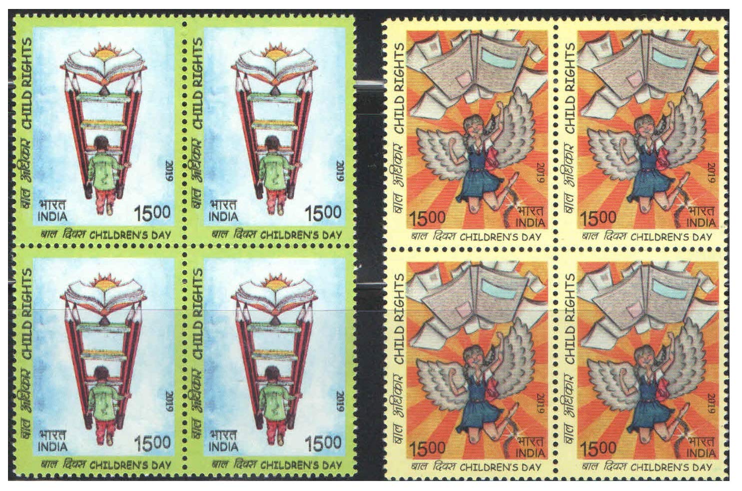 India 2019 Children’s Day – Child Rights Set of 2 Blocks of Four Postage Stamps Each ( Total 8 Stamps ) Mint Unhinged