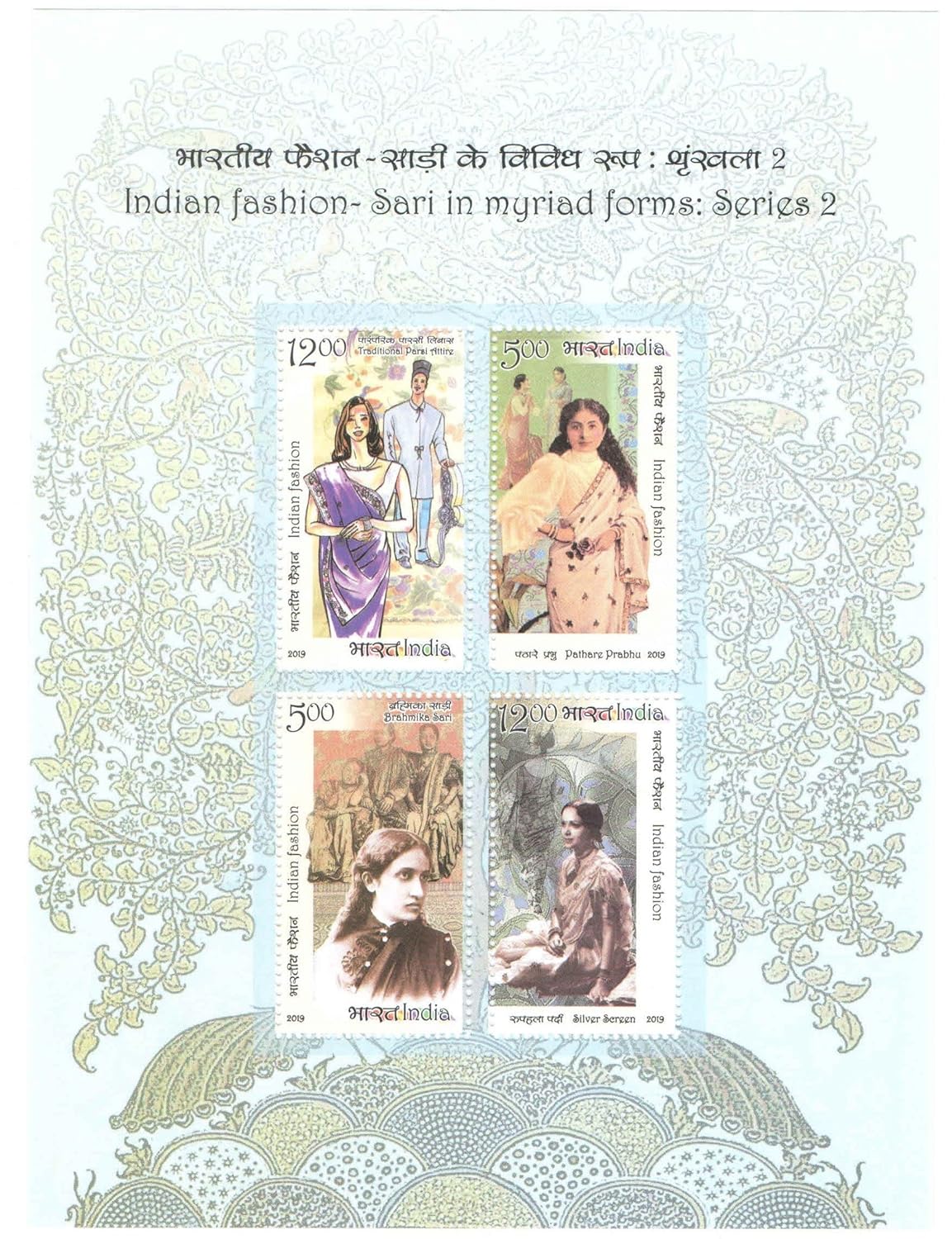 India 2019 Indian Fashion – Sari in Myriad Forms Series 2 Miniature Sheet MS of 4 Postage Stamps Mint Unhinged