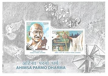 India 2019 Mahatma Gandhi Ahimsa Parmo Dharma Miniature Sheet MS of 2 Postage Stamps Mint Unhinged