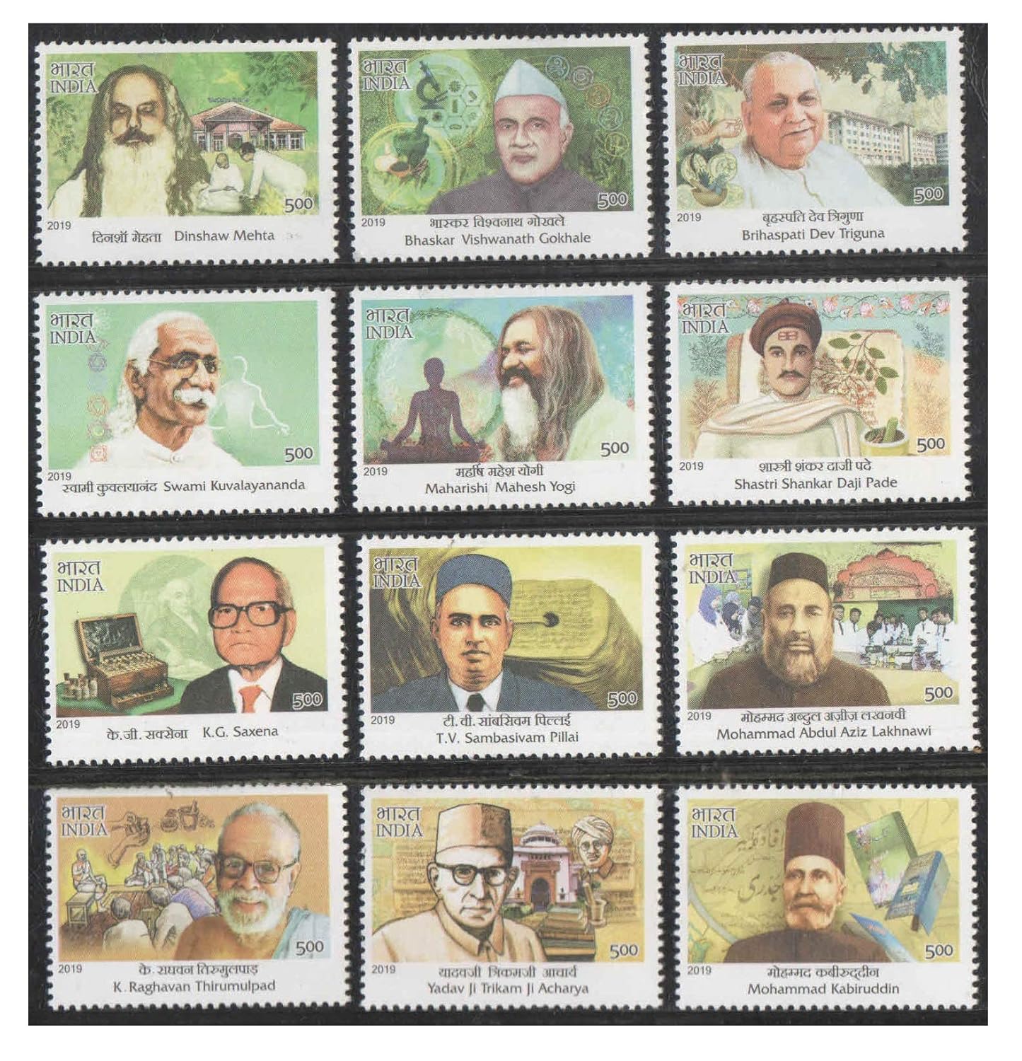 India 2019 Master Healers of Ayush Set of 12 Postage Stamps Mint Unhinged