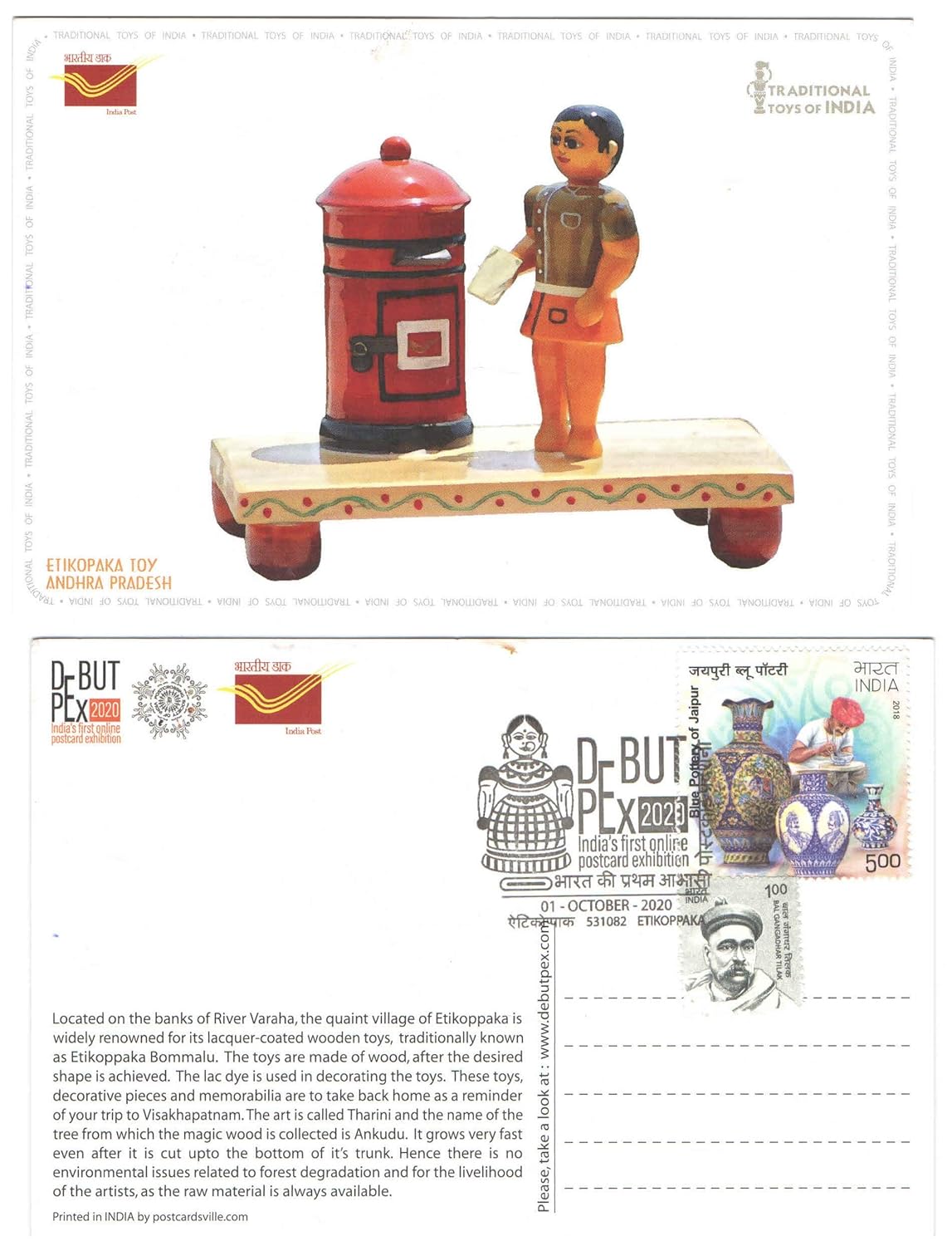 India 2020 DEBUTPEX 2020 India’s First Online Postcard Exhibition – Etikoppaka Toy Andhra Pradesh Card (Etikoppaka P.O. Cancellation)