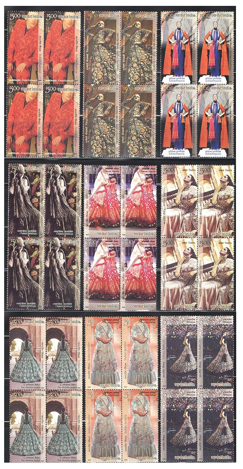 India 2020 Designers’ Creation Indian Fashion Series Set of 9 Blocks of Four Stamps Each ( Total 36 Stamps ) Mint Unhinged