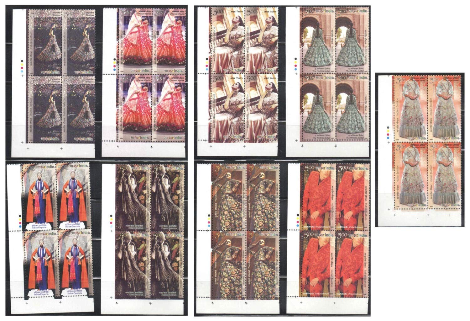 India 2020 Designers’ Creation Indian Fashion Series Set of 9 TL (Traffic Lights ) Blocks of 4 Stamps Each ( Total 36 Stamps ) Mint Unhinged