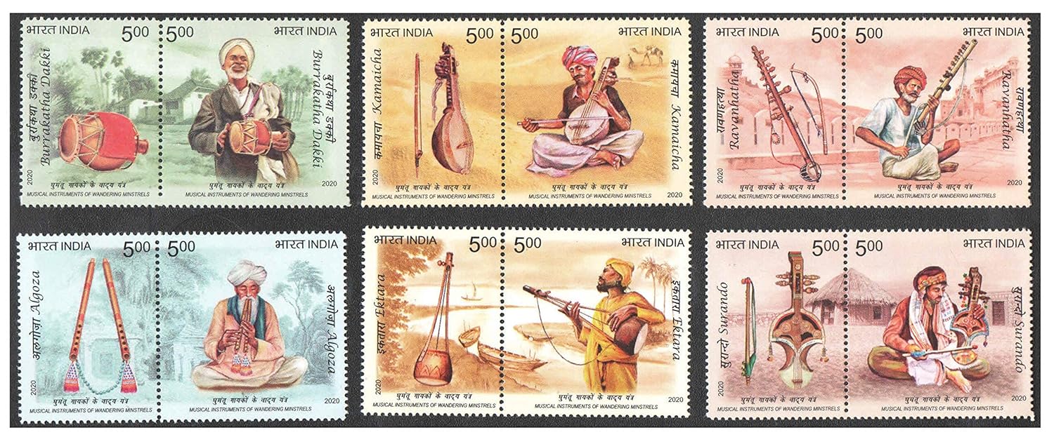 India 2020 Musical Instruments of Wandering Minstrels Set of 6 Se-Tenant Stamps ( Total 12 Stamps ) Mint Unhinged
