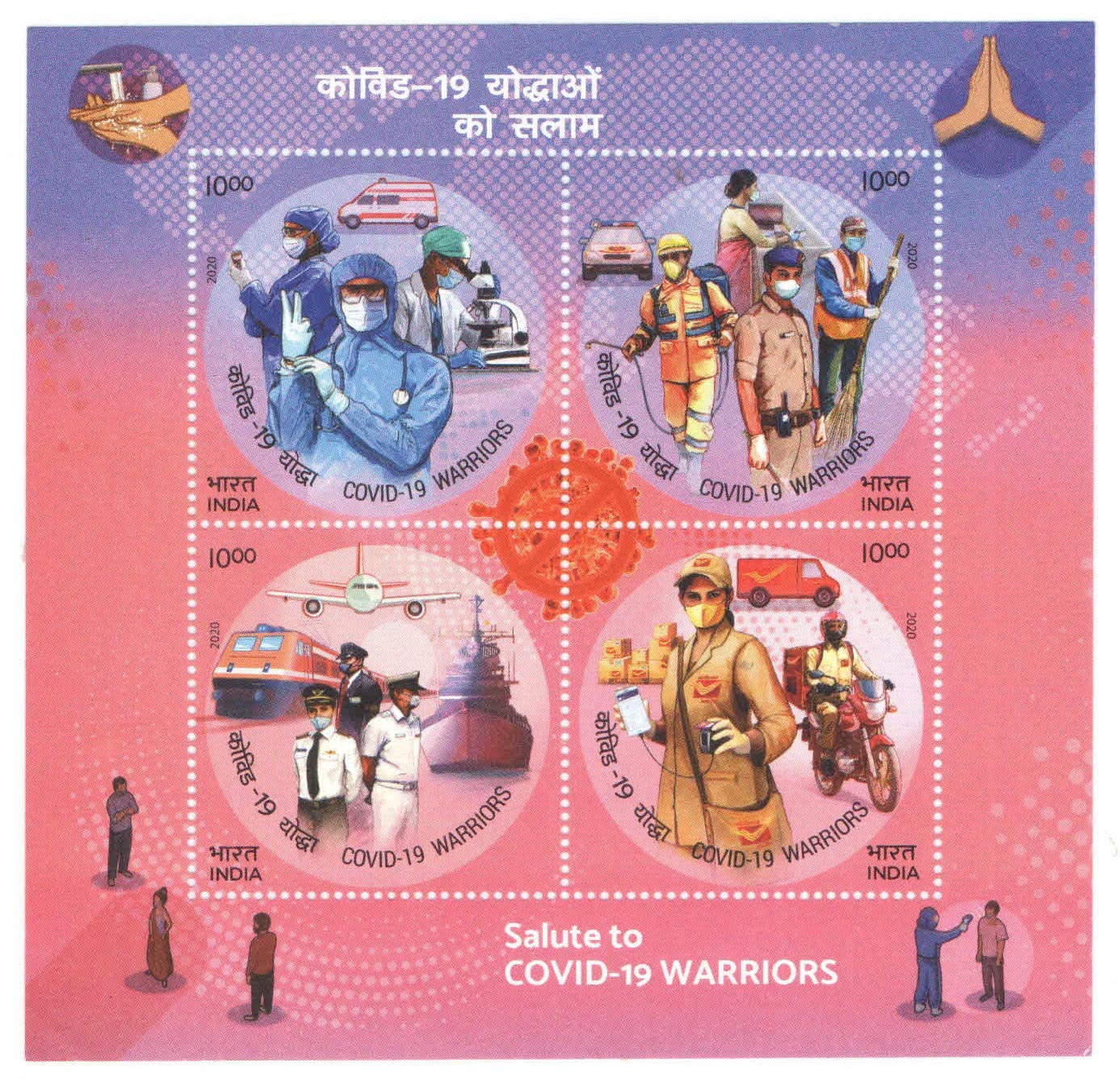 India 2020 Salute to COVID -19 Warriors Miniature Sheet ( MS ) containing 4 se-Tenant Stamps Mint Unhinged