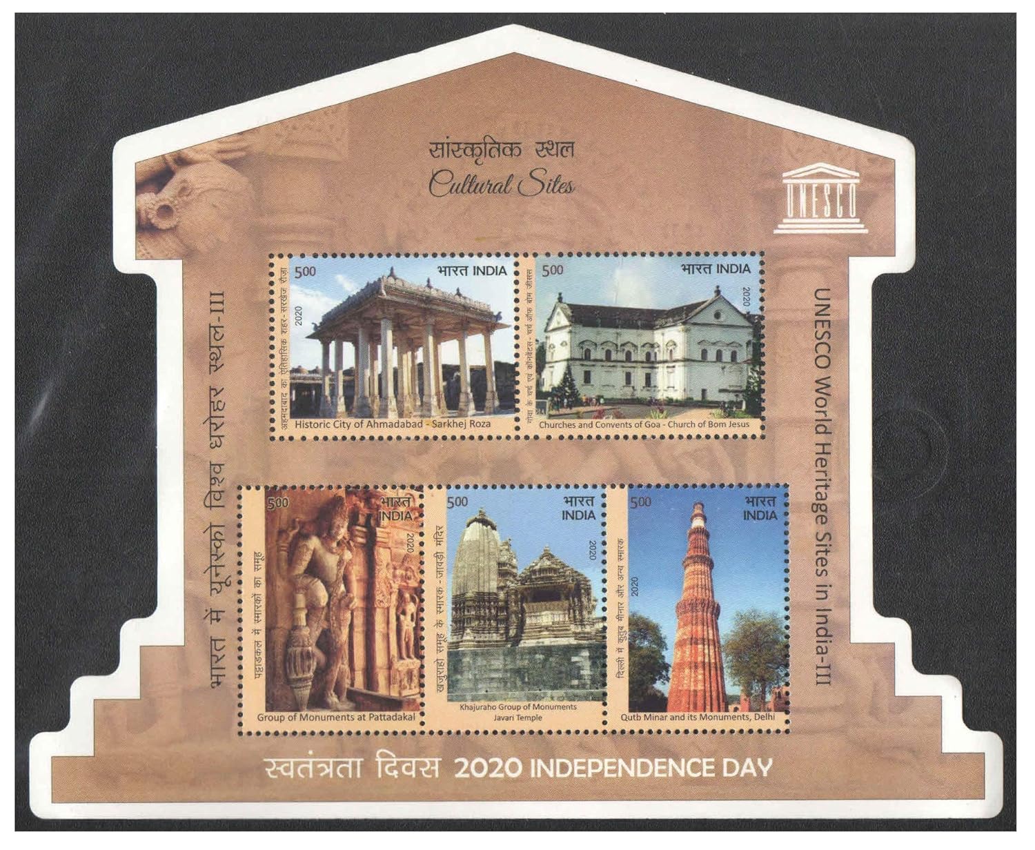 India 2020 UNESCO World Heritage Sites in India – III Miniature Sheet ( MS ) of 5 Postage Stamps Mint Unhinged