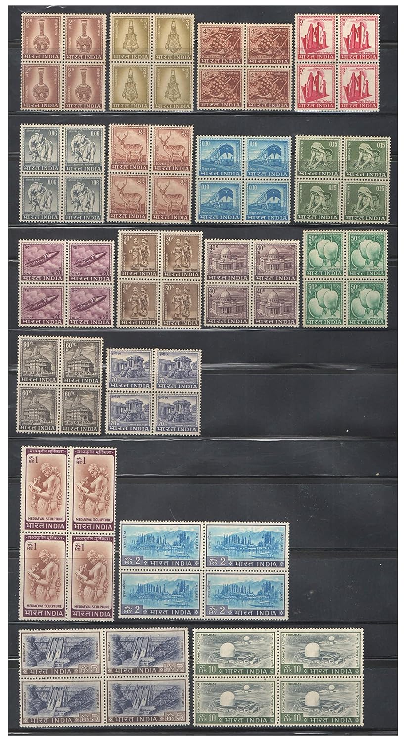 India Postage 1965-1975 – 4th Definitive Series – Complete & Full Pack of 18 Blocks of 4 Postage Stamps Each (Total 72 Stamps) MintNever Hinged