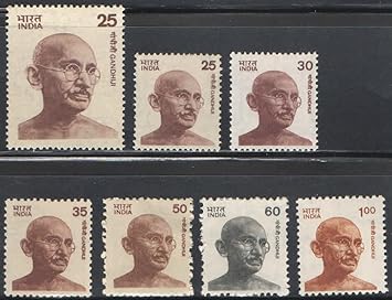 India Postage 1974 – 1983 Mahatma Gandhi Special Definitive Series – Complete Set of 7 Postage Stamps MNH