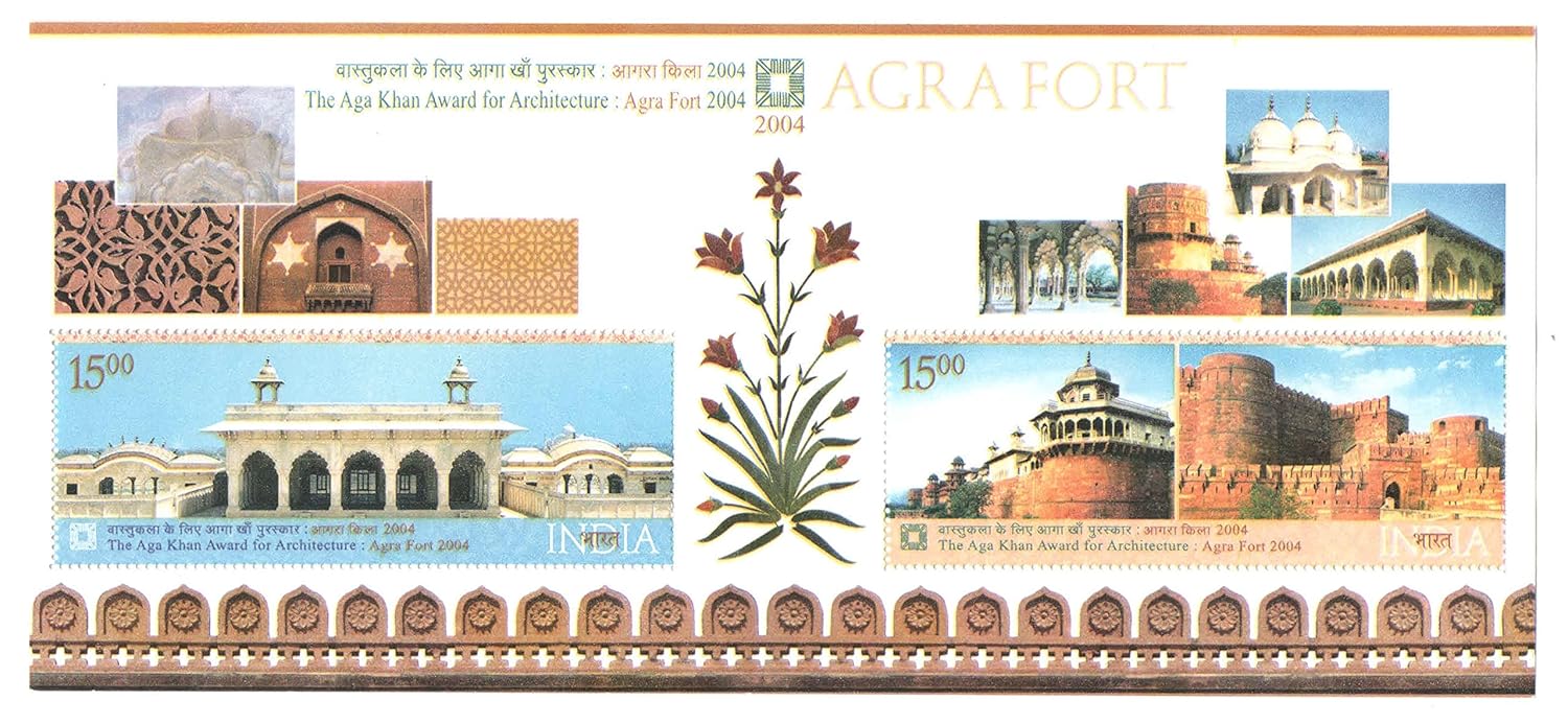 India Postage 2004 – The Aga Khan Award for Architecture – Agra Fort Miniature Sheet -MS of 2 Postage Stamps Mint Never Hinged