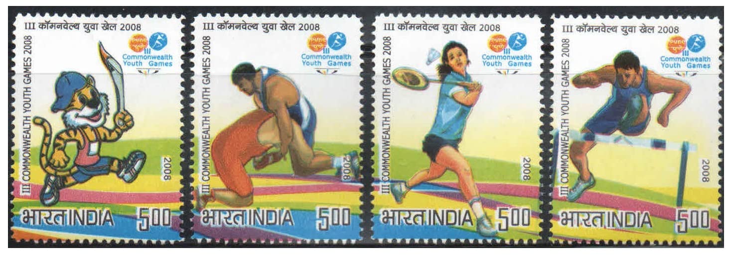 India Postage 2008 – III Commonwealth Youth Games 2008 – Set of 4 Postage Stamps Mint Never Hinged